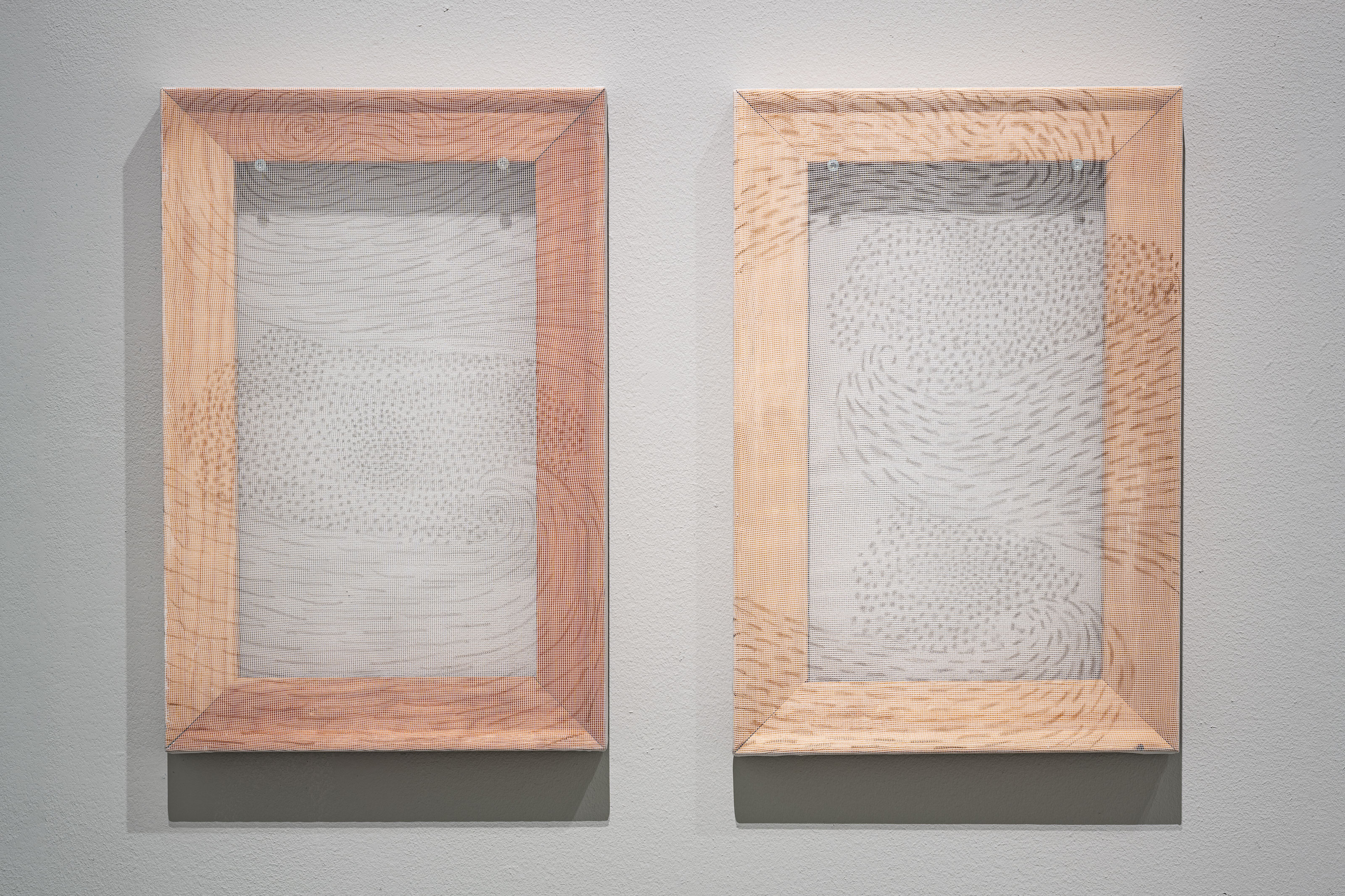 Pencil on synthetic fabric, wooden stretcher